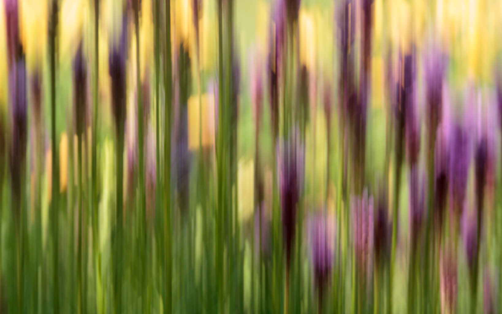 Garden Sweep - Liatris (Blazing Star) and Yellow Daylilies, ©2015 Lynne S. Ford. All rights reserved., Original digital image capture with intentional image blur via camera movement (ICM). Post-processed in Photoshop.